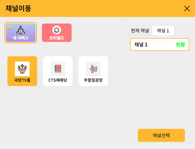 '채널선택' 버튼을 누르면 이동하게 된다.