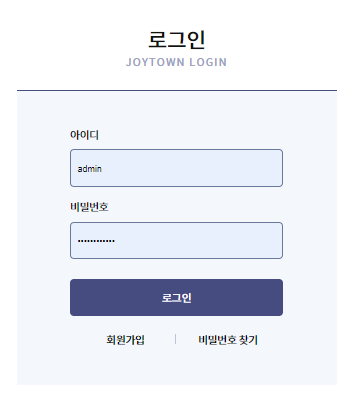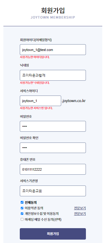 회원가입을 통해 조이타운 계정을 만든다.