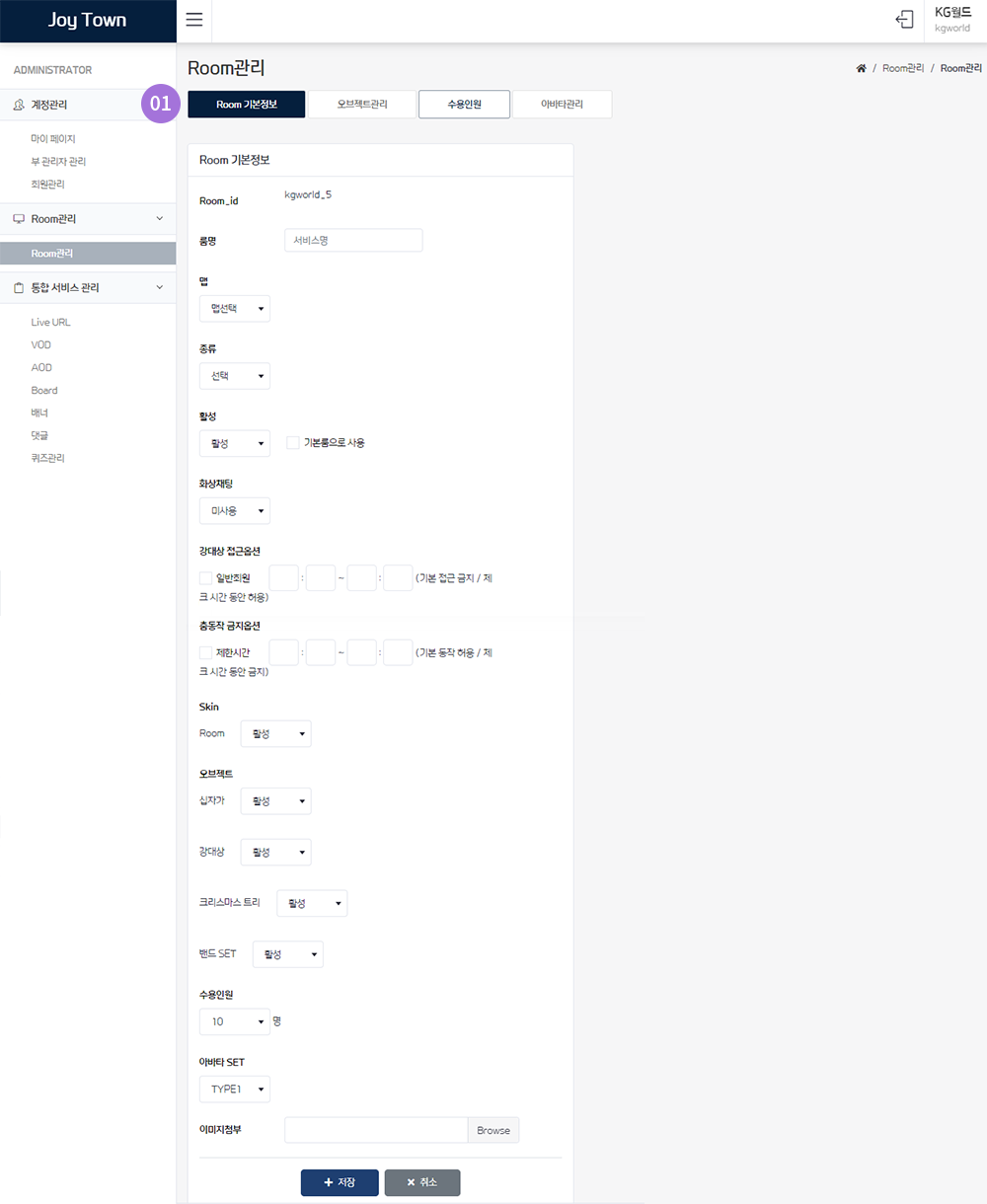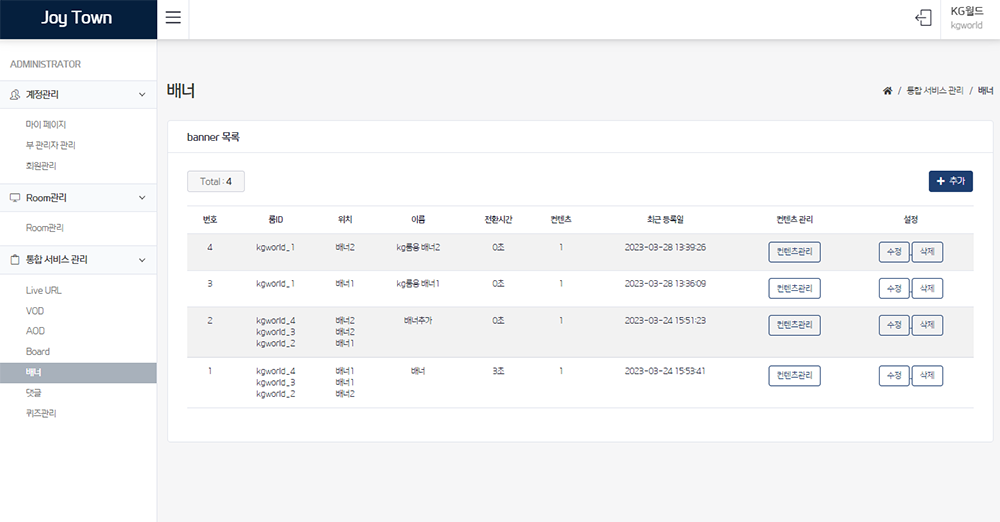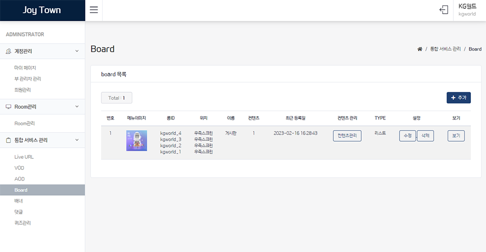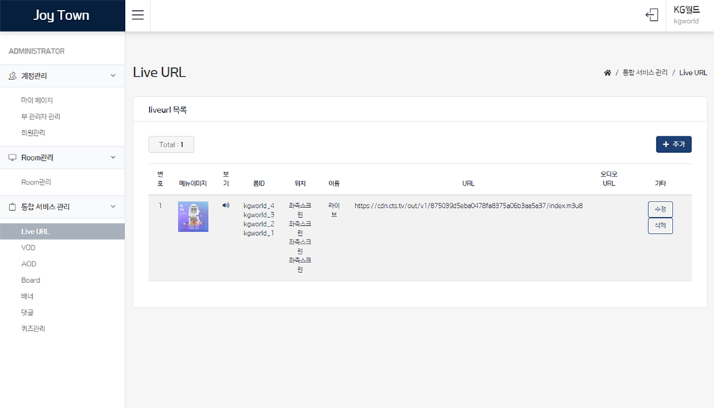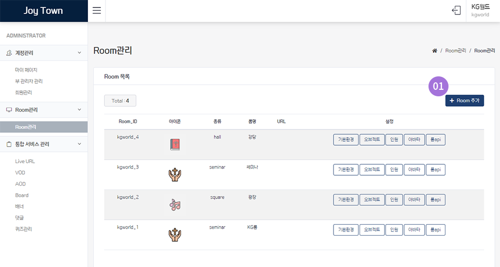 내 서비스 안의 설정되어 있는 룸을 확인할 수 있다.