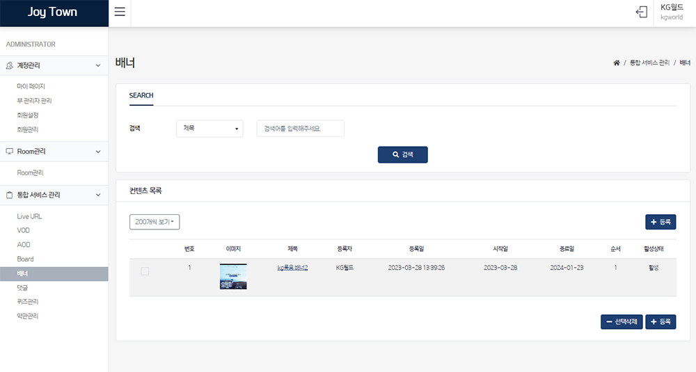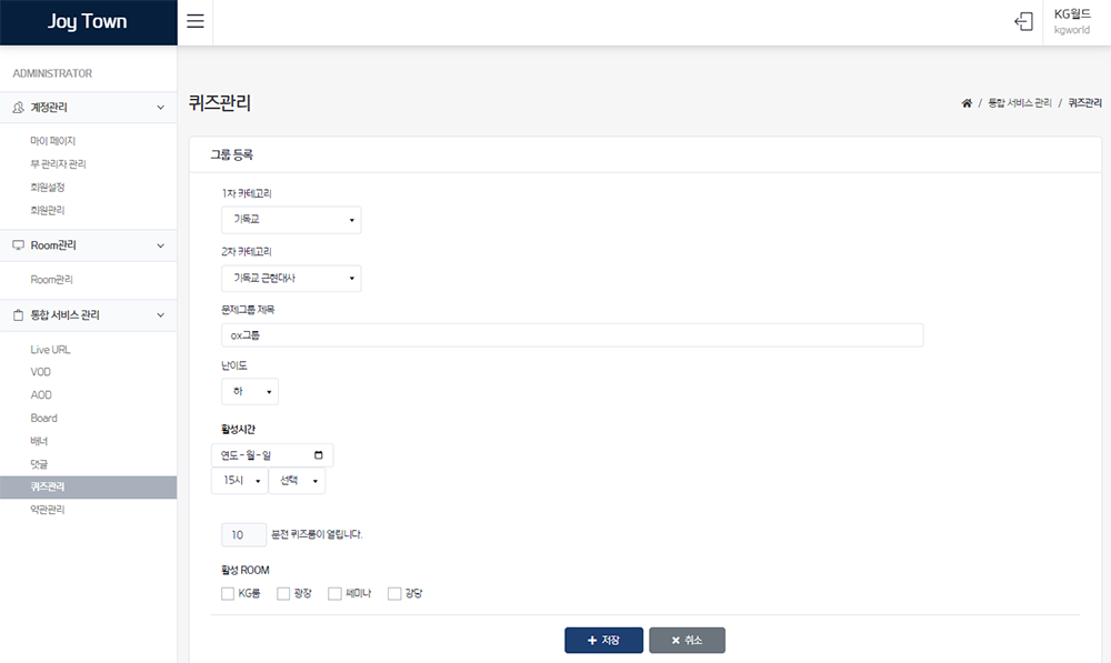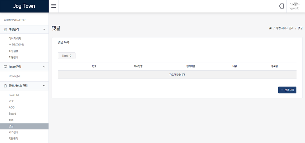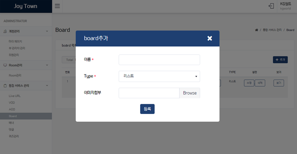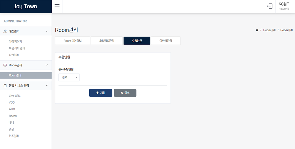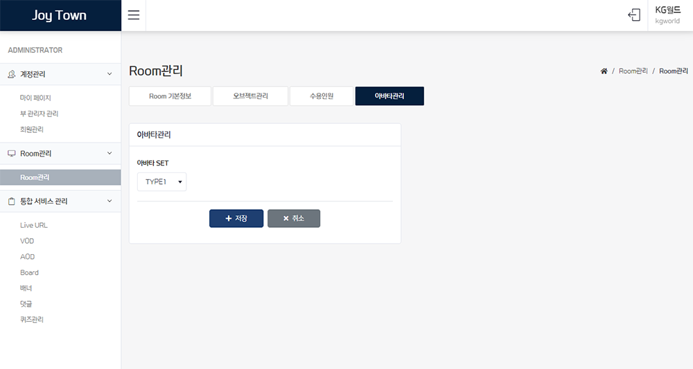 내 서비스 안의 설정되어 있는 룸을 확인할 수 있다.