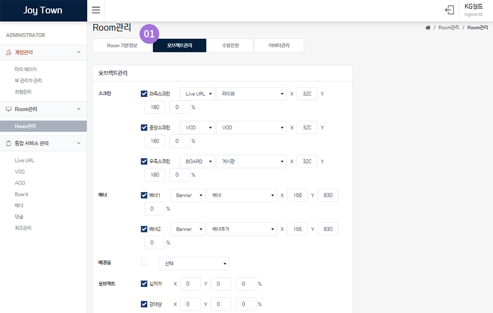 조이타운 화면 구성