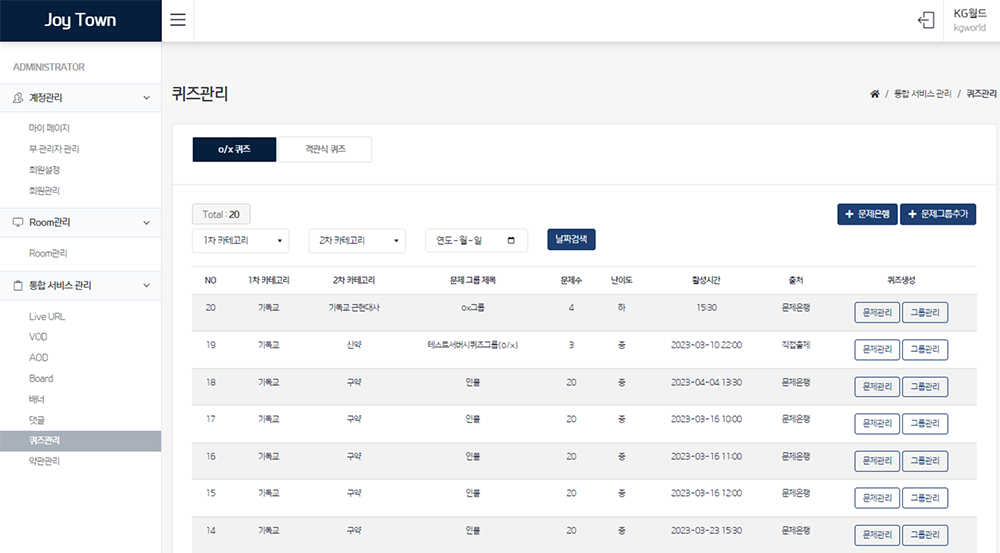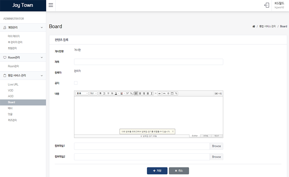 조이타운 채널 구성