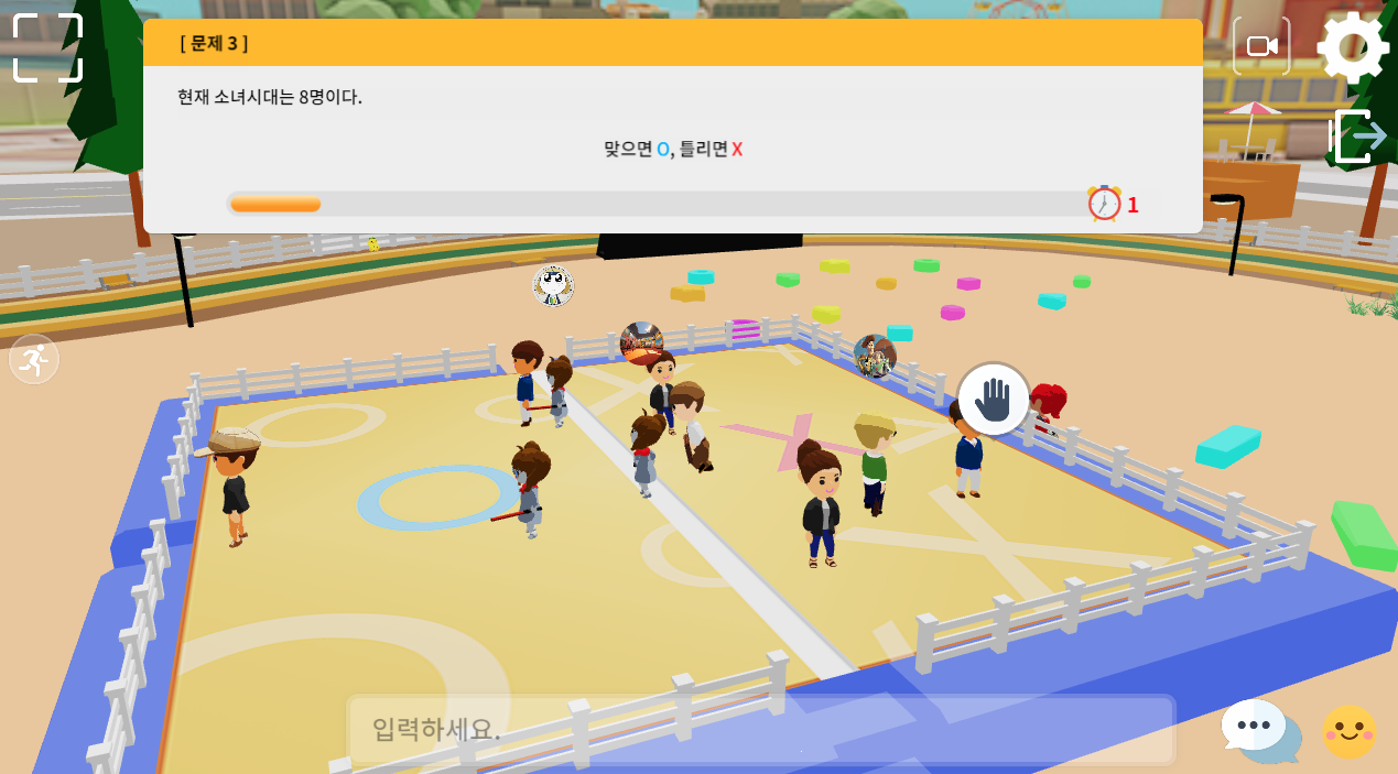 O,X 퀴즈 및 객관식 4지 선다형 문제의 퀴즈 게임 단상 위에 올라가게 된다.