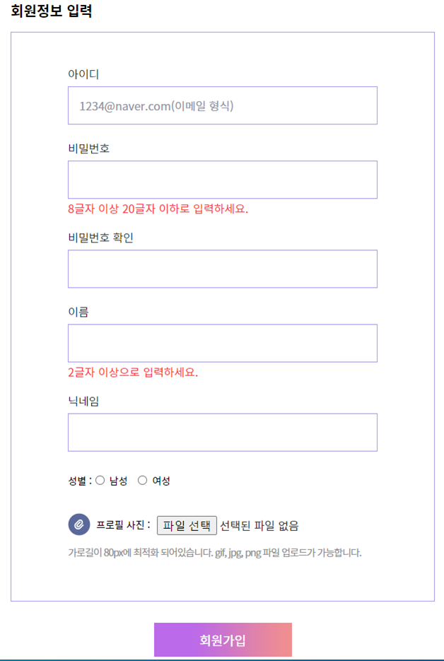 아이디는 이메일 형식으로 설정해야 한다.
