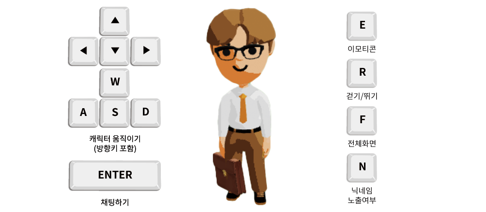 이모티콘을 통해 캐릭터의 표정 변화가 가능하다.