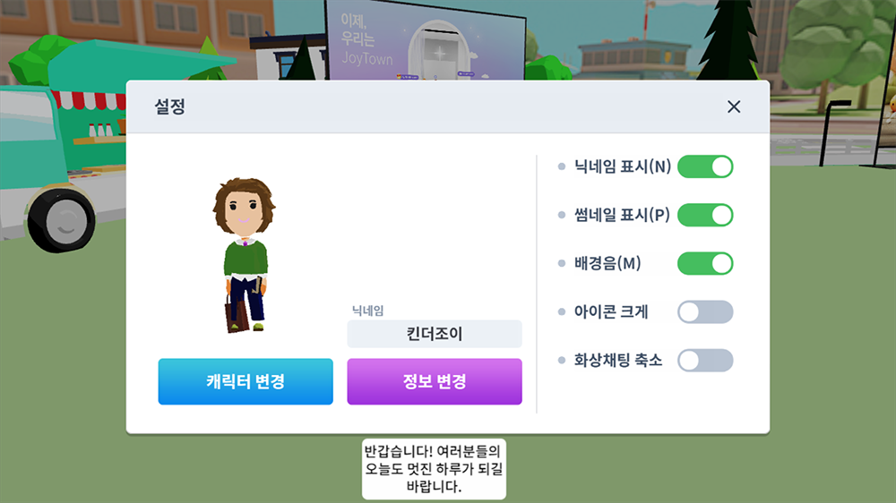 캐릭터 및 개인 정보 변경이 가능하다.