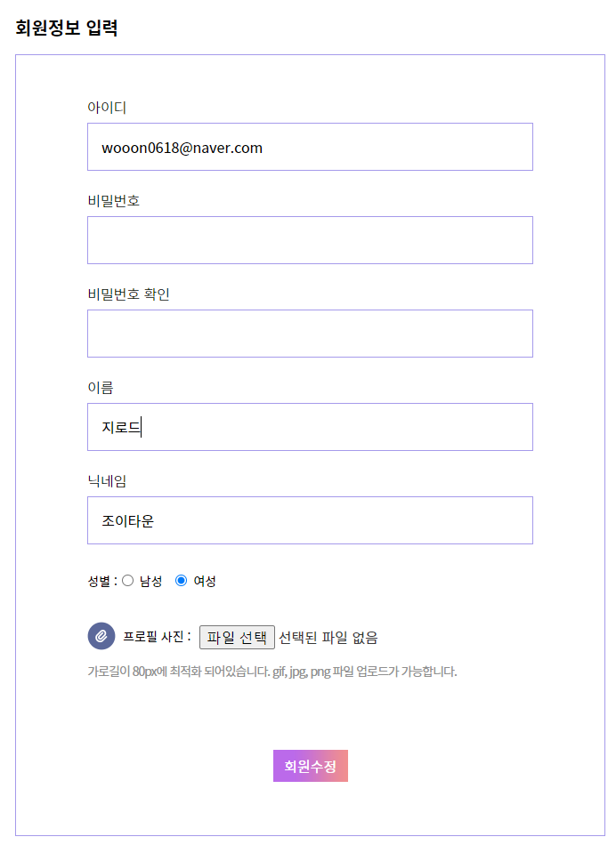 계정 정보 변경이 가능하다.